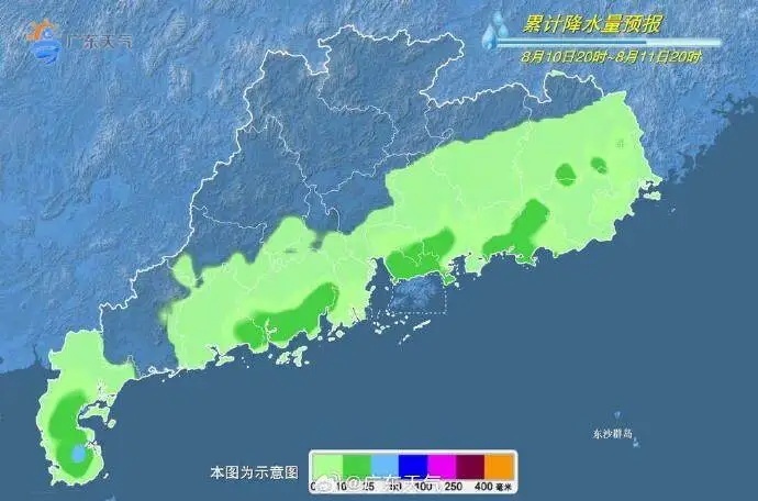 11日-12日,广东大部多云间阴天为主,有分散(雷)阵雨。最高气温:除雷州半岛外的南部市县31℃~33℃,其余市县普遍介于34℃~36℃。